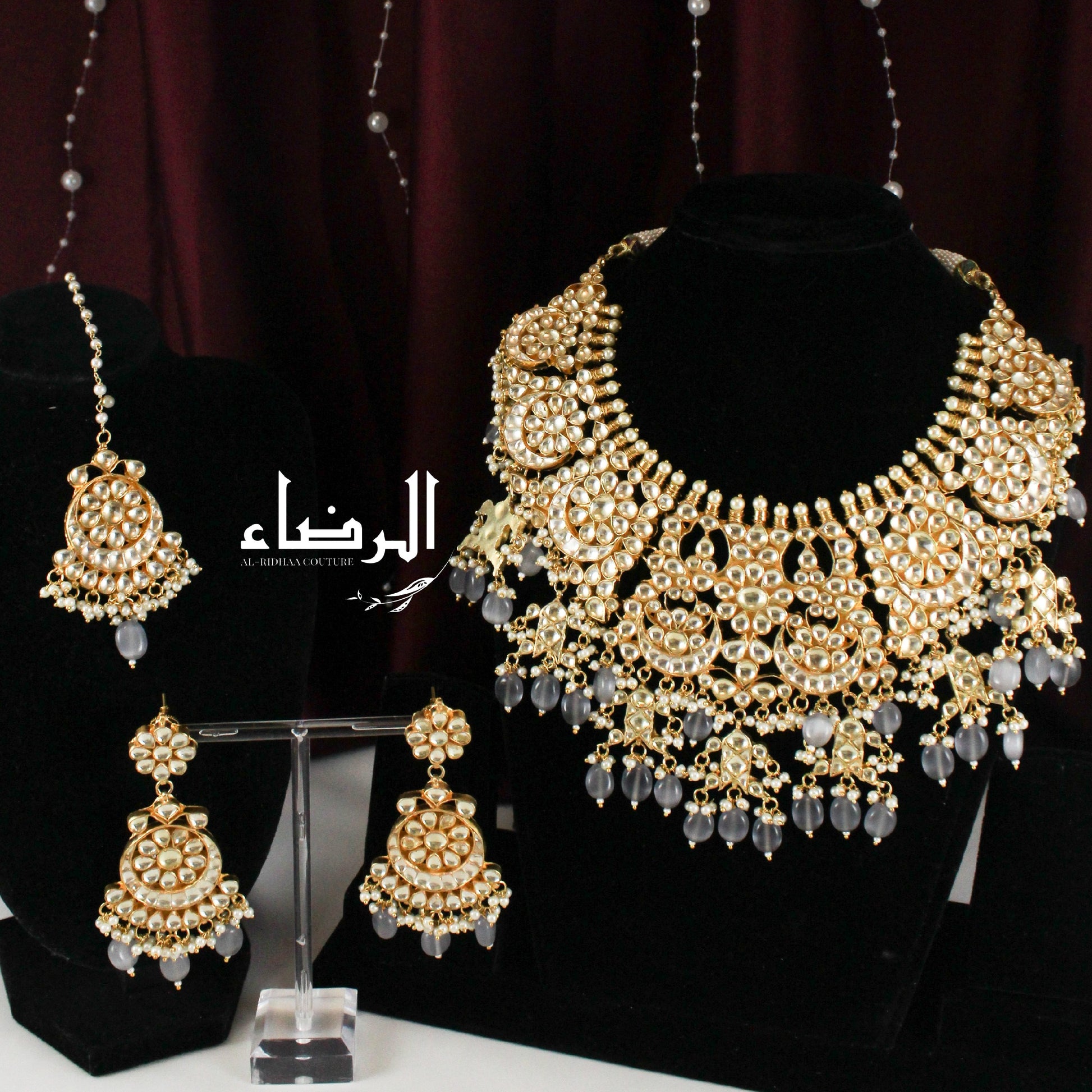 Beautiful Pachi Kundan Set with Grey Beads🤍